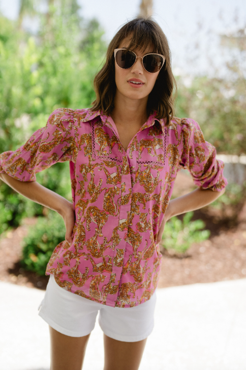 The Ava Lilac Josie Top features a super cute print designed for our ladies. This stylish and versatile top is perfect for any occasion, adding a touch of fun and personality to your wardrobe. Made with high-quality materials, it offers both comfort and style for a timeless look.