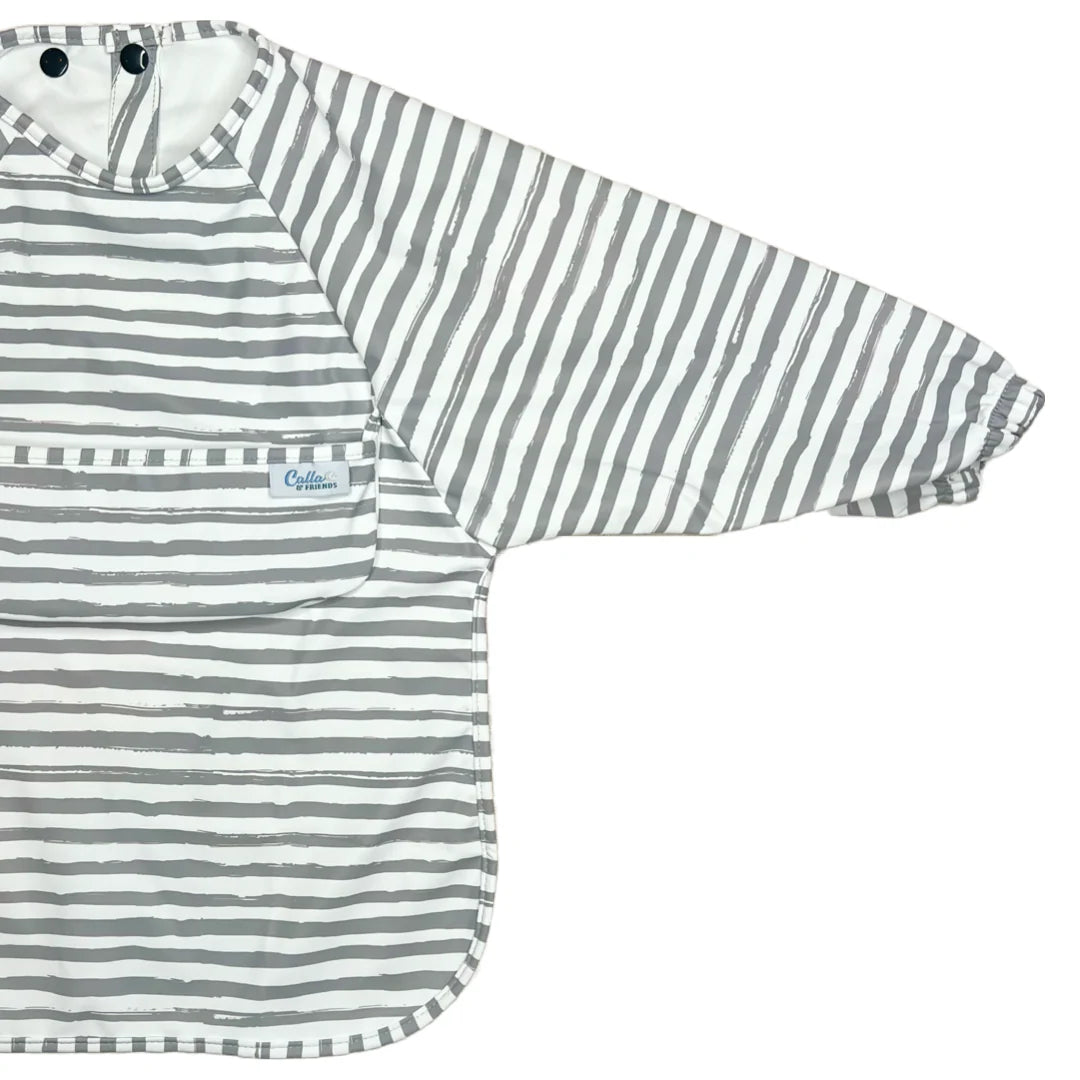 Perfect for your little one's meal-time, water table adventures, messy crafts, or any other time you want to keep those cute clothes clean. Not only do these long sleeve bibs match all of their cute clothes, they’re also highly functional. Each bib comes in a matching wet/dry bag making it perfect for on the go. Simply place your dirty bib back in its bag & keep your diaper bag clean. With their waterproof design and catch-all pocket, they effortlessly keep your baby's clothes clean and dry. The pocket even folds under to fold flat when not needed for crafts or sensory tables. The multi-snap neck closure & elastic cuffs ensure a secure and adjustable fit that grows with your little one, making them perfect for every stage of their development.