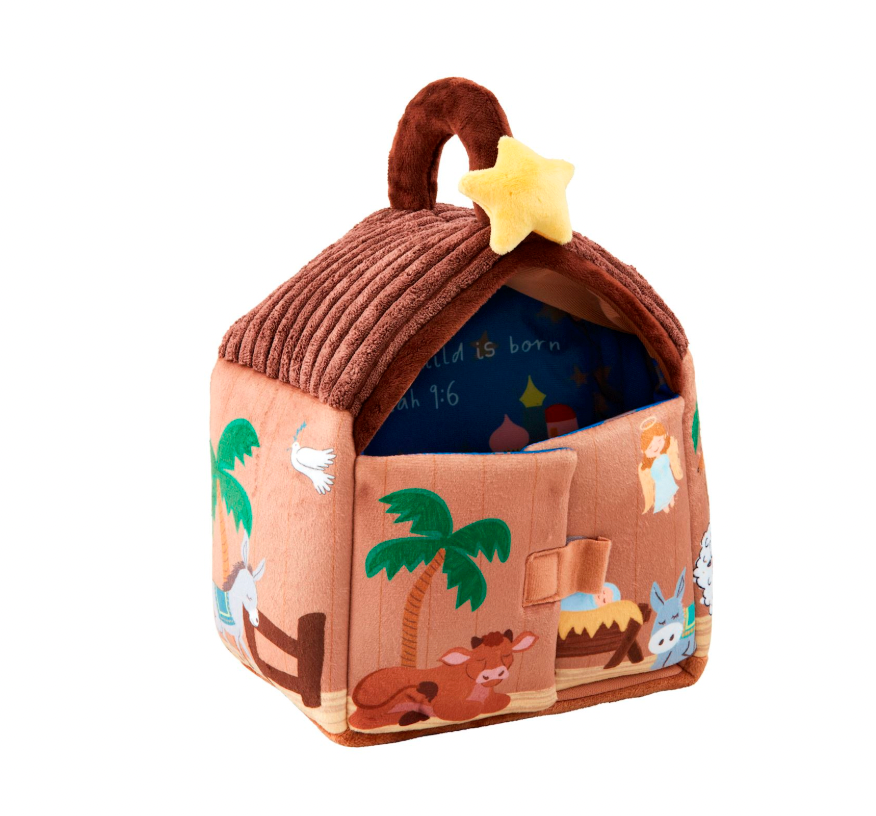 4-piece set. Interactive plush Nativity stable comes with Mary, Joseph and baby Jesus. Sound chip in star plays "Away in a Manger." Ages 18M+.