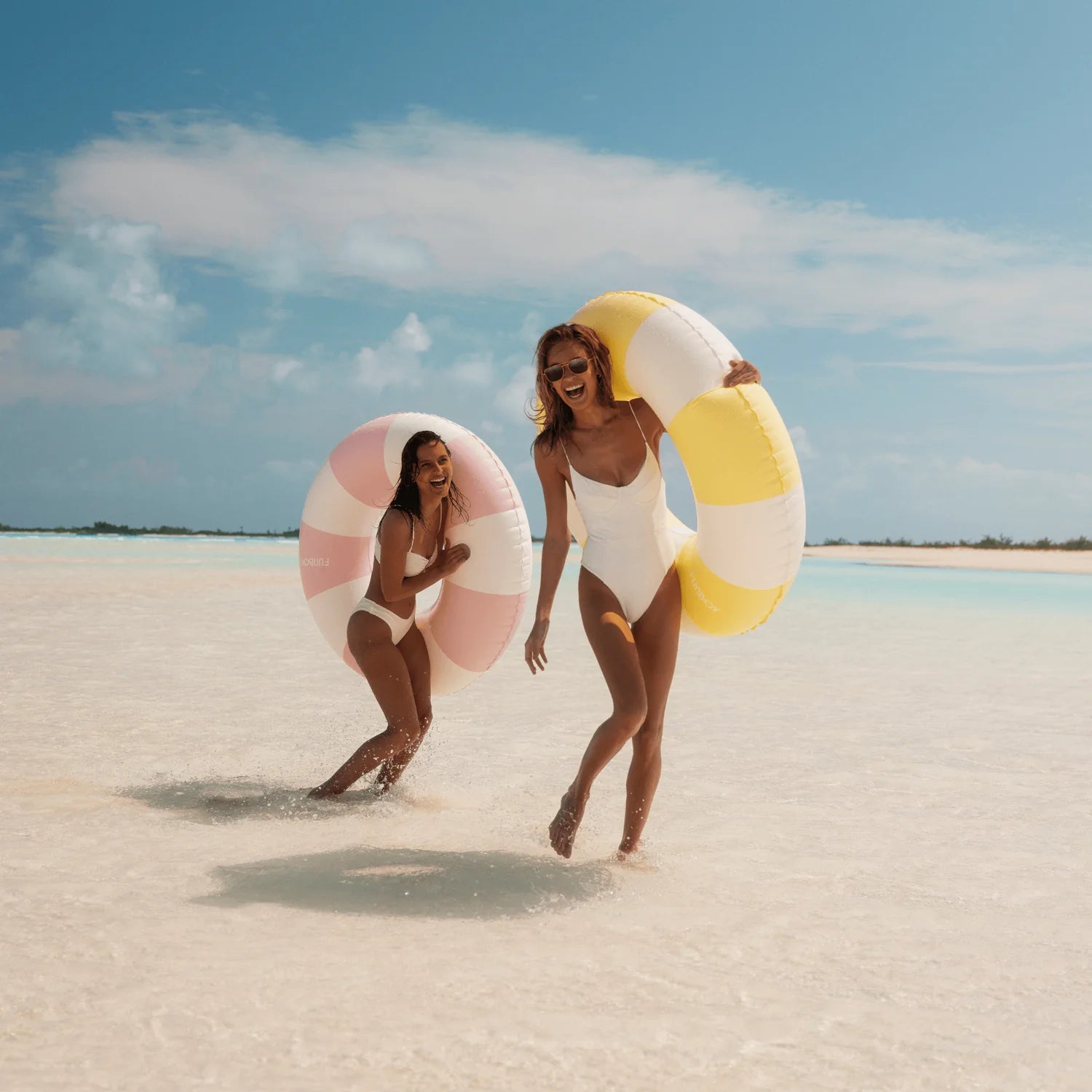 FUNBOY Vintage Stripe 48" Tube Ring Style Pool float with Integrated Cup Holder in classic buttery yellow colorway. A nostalgic and timeless tube float for your best summer days.